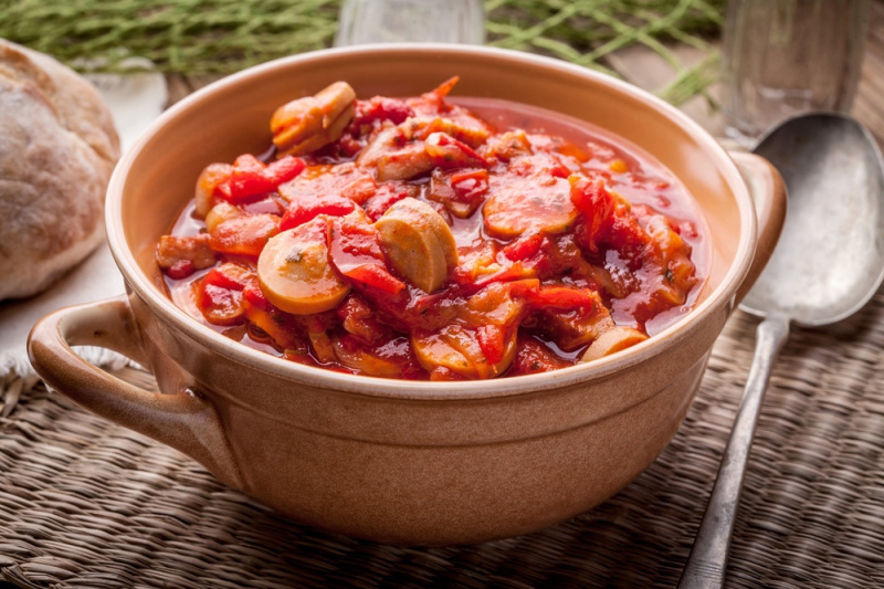 Томатное рагу с сосисками