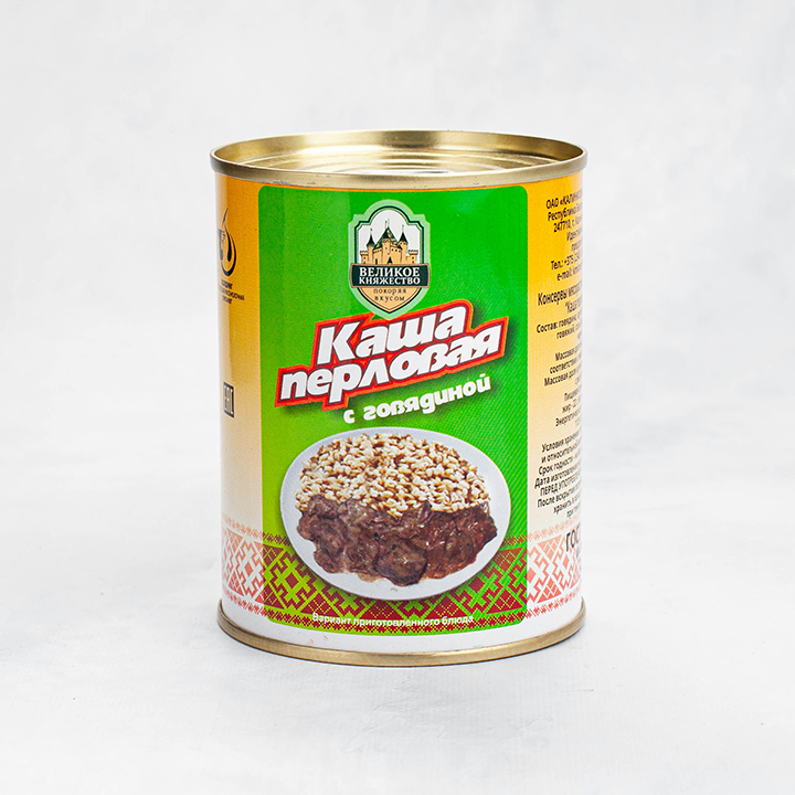 говядина, крупа перловая, жир - сырец говяжий, вода питьевая, лук, соль пищевая йодированная, перец черный молотый