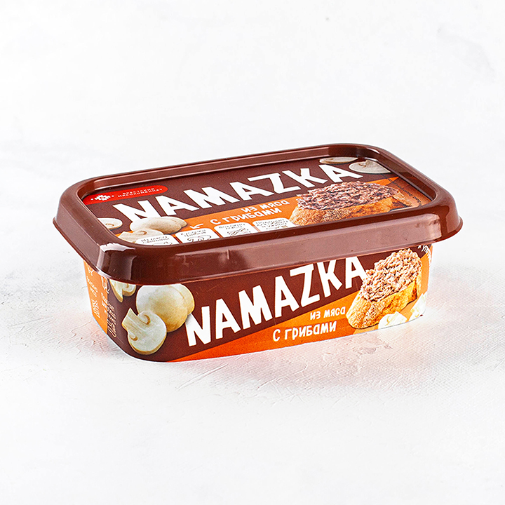 свинина, вода, масло подсолнечное, шампиньоны, молоко сухое обезжиренное, комплексная пищевая добавка (стабилизатор , яичный желток, загустители), крахмал картофельный, комплексная пищевая добавка (декстроза, усилитель вкуса и аромата), соль, перец черный молотый, кусочки грибов (шампиньоны), ароматизаторы, чеснок кусочки, экстракты специй (перец, тимьян, лавровый лист, розмарин, сельдерей, можжевельник), порошок горчичный, мальтодекстрин, регулятор кислотности), антиокислитель аскорбиновая кислота), антислеживающий агент), соль йодированная (соль, йодат калия, агент антислеживающий), комплексная пищевая добавка для мясной продукции с йодом «Смесь посолочно-нитритная» (соль; консервант, фиксатор окраски, йодат калия), комплексная пищевая добавкаi), хлорид натрия), комплексная пищевая добавка (белок гемоглобина, декстроза, сироп глюкозы, краситель:кармины), комплексная пищевая добавка (антиокислители аскорбиновая кислота), носитель (соль).