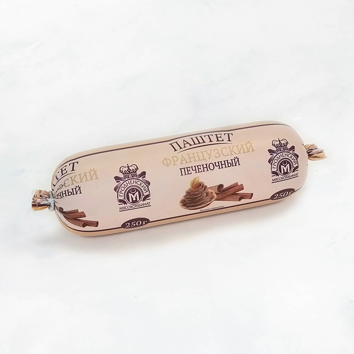 Субпродукты (мясо голов свиных, печень свиная и говяжья), бульон, жир-сырец свиной, мясо механической обвалки цыплят бройлеров, крупа манная, крахмал картофельный, лук сушеный, меланж, соль (содержит йодат калия), фиксатор окраски, корица молотая, приправы и экстракты приправ (перец, мускатный орех, имбирь), эмульгатор, антиокислитель, усилитель вкуса и аромата, соевый белок, загуститель, стабилизаторы, регуляторы кислотности, ароматизатор (содержит молоко).
