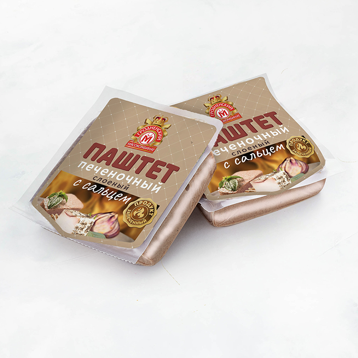 Печень свиная, говяжья, бульон, мясо голов свиных, шпик боковой, жир- сырец свиной, шкурка свиная, соединительная ткань, сухари панировочные пшеничные (мука пшеничная высшего сорта, соль йодированная, дрожжи прессованные), лук сушеный, морковь сушеная, сыворотка молочная сухая, комплексная пищевая добавка (желатин, соль, сахар, усилитель вкуса и аромата, антиокислитель), соль, фиксатор окраски, йодат калия, приправы и экстракты приправ (мускатный орех), эмульгатор, антиокислители, усилитель вкуса и аромата, регуляторы кислотности, ароматизатор (молоко), гидролизованный растительный белок (из кукурузы).