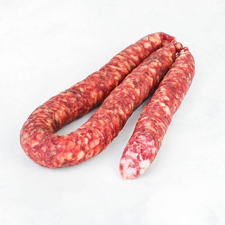 свинина, шпик, соль, молочный белок, пшеничная клетчатка, сахар, прянности, аскорбиновая кислота, усилитель вкуса и аромата, ароматизаторы, стартовые культуры микроорганизмов, фиксатор окраски, краситель (кармин).