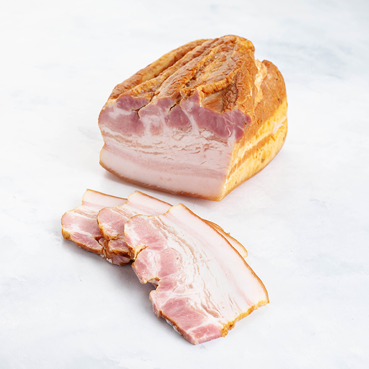 грудореберная часть с удаленными ребрами свиная, рассол (вода, комплексная пищевая добавка (загустители, регулятор кислотности, растительная клетчатка, животный белок (содержит коллаген), усилитель вкуса и аромата, кукурузный крахмал, мальтодекстрин, инулин, антиокислитель, масло растительное, соль йодированная, декстроза, экстракты специй, дрожжевой экстракт, ароматизатор коптильный, краситель), комплексная пищевая добавка с йодом (соль йодированная, фиксатор окраски), приправы (кориандр, горчица, куркума, паприка).