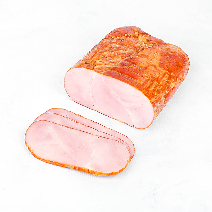 мясо свинины, вода питьевая, посолочная смесь (соль поваренная, фиксатор окраски нитрит натрия), пшеничная клетчатка, регулятор кислотности, загустители, декстроза, усилитель вкуса и аромата, ароматизатор ветчины, краситель