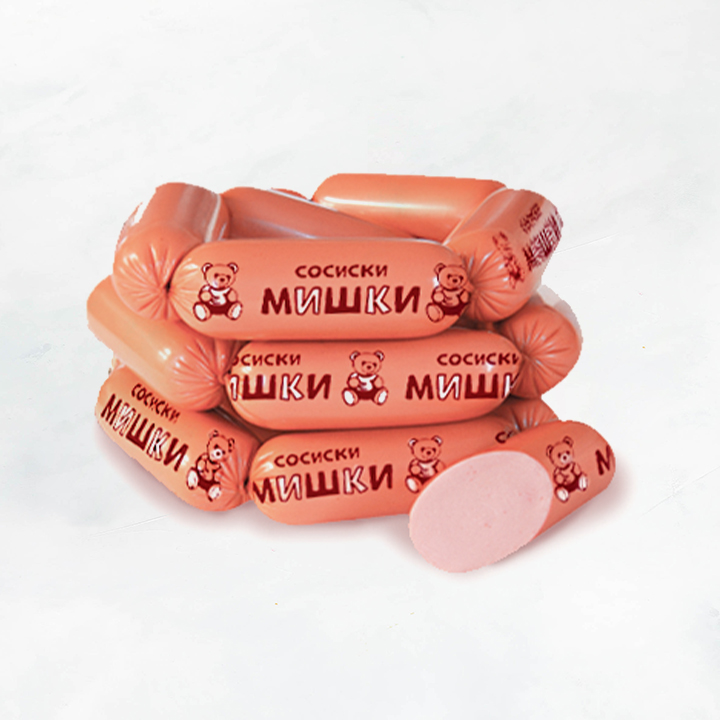 Мясо цыплят- бройлеров бескостное, мясо цыплят-бройлеров механической обвалки, вода питьевая, жировая эмульсия (жир-сырец говяжий, вода питьевая, соль (содержит йодат калия), стабилизатор, загуститель, растительная клетчатка), коллагеновый белок говяжий гидратированный (вода питьевая, коллагеновый белок говяжий), сыворотка молочная сухая, крахмал картофельный, соль (содержит йодат калия), фиксатор окраски, регуляторы кислотности, усилитель вкуса и аромата, антиокислитель, изолят соевого белка, стабилизатор, загуститель, агент желирующий, краситель, ароматизатор.
