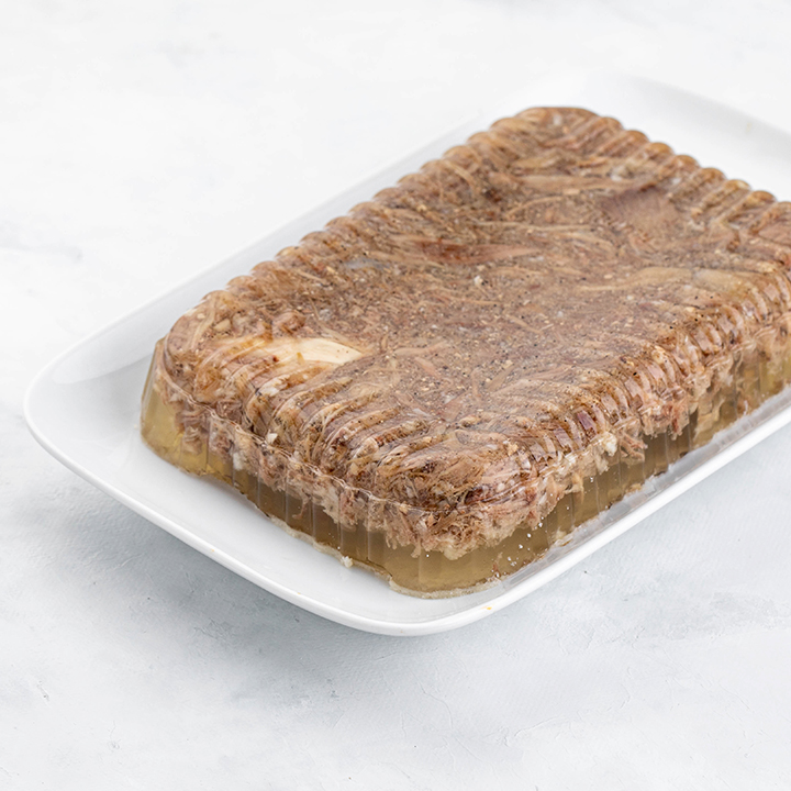 Вода питьевая, говядина, мясо хвоста говяжьего, желатин пищевой, чеснок сушеный гранулированный, фитосоль пищевая (соль поваренная пищевая йодированная, фитокомплекс (чеснок, тмин, мускатный орех, гвоздика)), соль йодированная, комплексная пищевая добавка (сахара (мальтодекстрин, декстроза), усилитель вкуса и аромата, соль, ароматизатор), бульон сухой пищевой говяжий, комплексная пищевая добавка (ламинария порошок, антиокислитель).