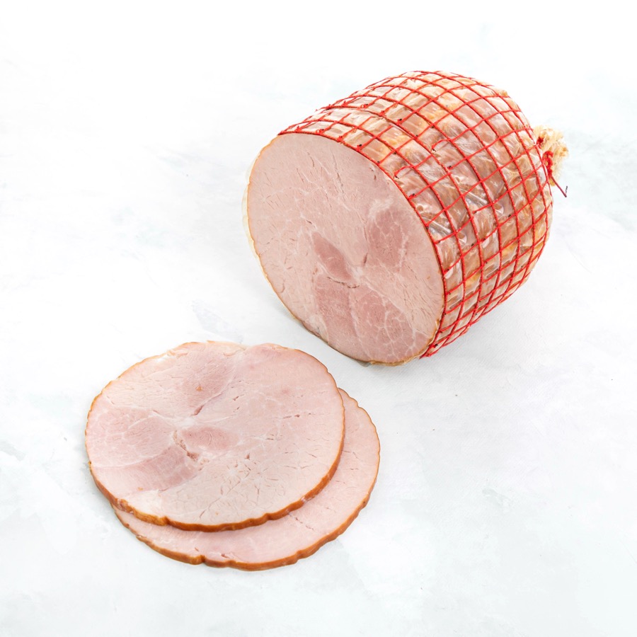 тазобедренная часть свиная, рассол (вода, комплексная пищевая добавка (загуститель, регулятор кислотности, животный белок (содержит коллаген полученнй из свиного, говяжьего и птичьего сырья, растительная клетчатка (пшеничная), усилитель вкуса и аромата, мальтодекстрин, инулин, регулятор кислотности, антиокислитель, масло растительное, загуститель, соль йодированная, декстроза, экстракты пряностей (любисток, кориандр), дрожжевой экстракт, ароматизатор коптильный, красители), комплексная пищевая добавка для мясной продукции с йодом (соль, фиксатор окраски, йодат калия), комплексная пищевая добавка (регуляторы кислотности, антиокислитель, йодированная соь, перец черный, кориандр, тмин.