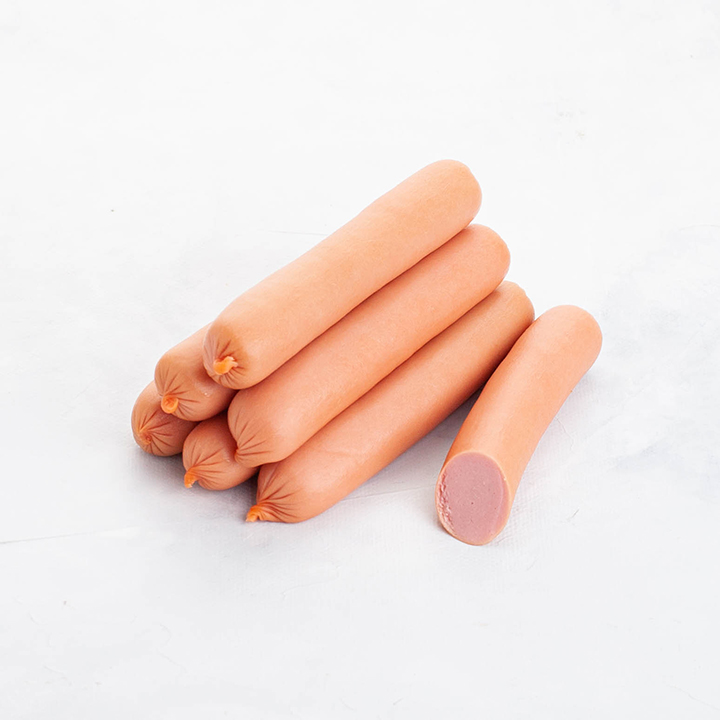 свинина, вода, говядина, жировая эмульсия (вода, жир-сырец, загустители, ароматизатор, соль (агент антислеживающий), йодат калия), сыворотка молочная, продукт яичный, комплексная пищевая добавка (загустители, агент желирующий, регулятор кислотности, агент влагоудерживающий, антиокислители, краситель, мальтодекстрин), соль (агент антислеживающий), фиксатор окраски, йодат калия, усилитель вкуса и аромата, олеорезины мускатного ореха.