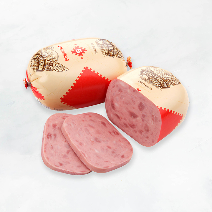 Свинина, мясо циплят-бройлеров, мясо индейки, крахмал картофельный, сыворотка молочная, регулятор кислотности, загуститель,ароматизатор. возможно наличие яиц, сои, горцицы, арахиса, сельдерея, злаков содержащий глютен, орехов и продуктов их переработки.
