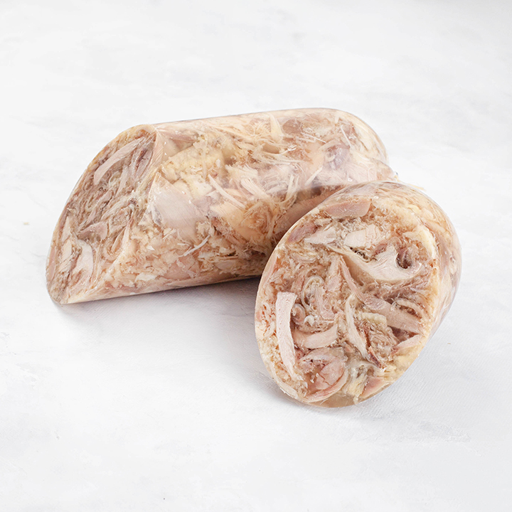 мясо куриное вареное, раствор желатина (вода, желатин пищевой), набор специй и пряностей, соль пищевая, консервант