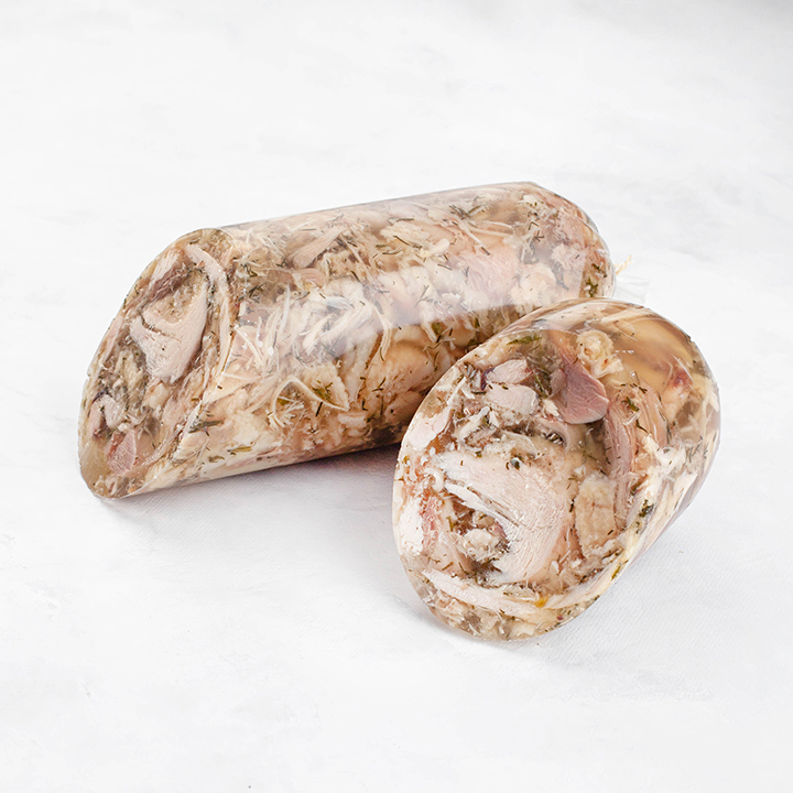 мясо куриное вареное, раствор желатина (вода, желатин пищевой), соль пищевая, укроп, консервант