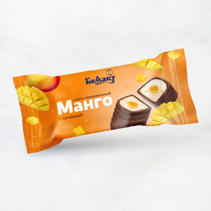 творог, сахар, глазурь кондитерская, фруктовый наполнитель "Манго", масло сливочное, ароматизатор