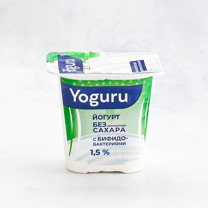 молоко нормализованное, сухое обезжиренное молоко, комплексная пищевая добавка (загуститель: дикрахмаладипат ацетилированный, пищевой желатин, стабилизатор: гуаровая камедь) с использованием бактериальной закваски с бифидобактериями. Количество молочнокислых микроорганизмов КОЕ в 1 г продукта не менее 1х10/7. Бифидобактерий - не менее 1х10/6. Без сахара.