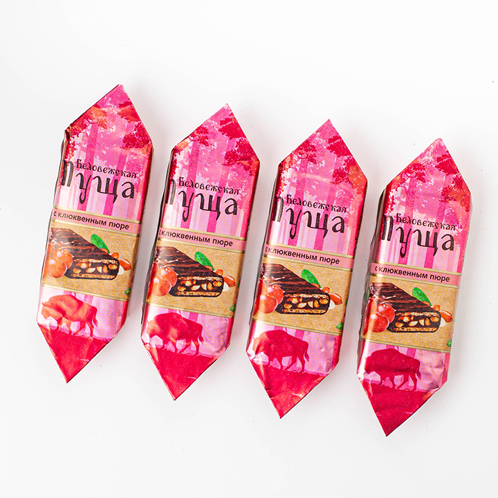 сахар, пюре яблочное, шоколадная глазурь (сахар, какао тертое, эквивалент какао-масла, смесь растительных масел, эмульгатор лецитин подсолнечный), какао-порошок, эмульгатор (лецитин соевый), ароматизатор "Ванилин-сливки", вафли листовые, арахис жареный дробленый, пюре клюквенное, ароматизатор "Клюква", агент желирующий пектин, регулятор кислотности: кислота лимонная, агент влагоудерживающий лактат натрия, Конфеты содержат арахис, муку пшеничную (глютен), яичные продукты, лецитин соевый. Не содержит ГМО