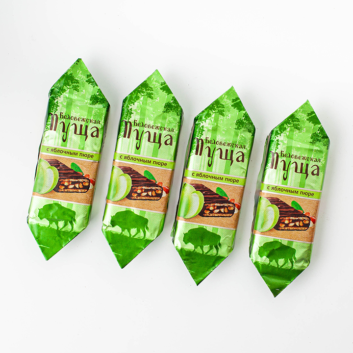 сахар, пюре яблочное, шоколадная глазурь (сахар, какао тертое, эквивалент какао-масла, смесь растительных масел, эмульгатор лецитин подсолнечный), какао-порошок, эмульгатор (лецитин соевый), ароматизатор "Ванилин-сливки", вафли листовые, арахис жареный дробленый, ароматизатор "Миндаль", агент желирующий пектин, регулятор кислотности: кислота лимонная, агент влагоудерживающий лактат натрия, Конфеты содержат арахис, муку пшеничную (глютен), яичные продукты, лецитин соевый. Не содержит ГМО