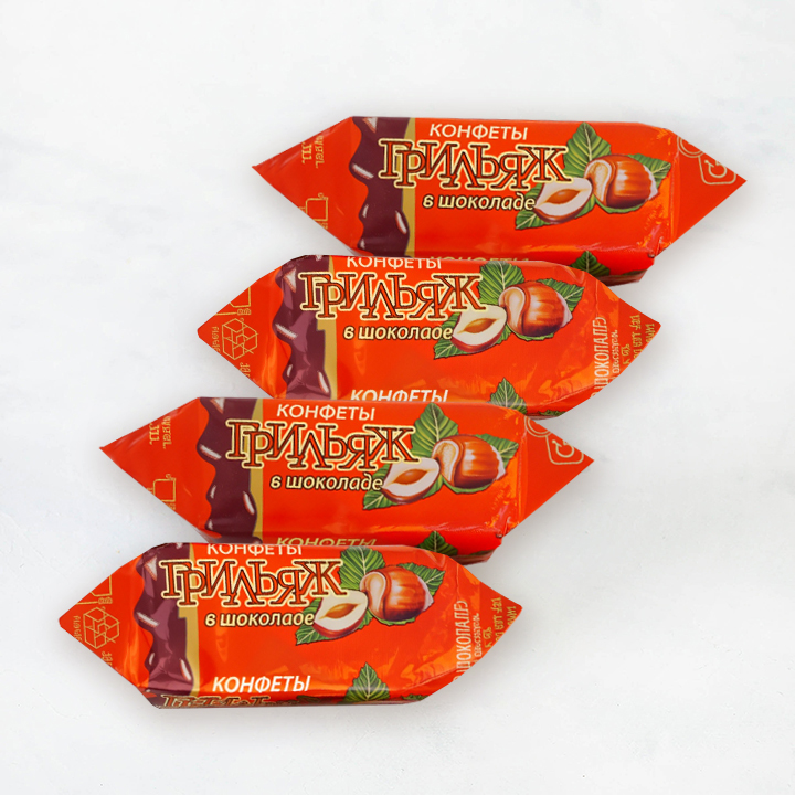сахар, шоколадная глазурь (сахарная пудра, какао-тертое, какао-масло, эмульгаторы - соевый лецитин, ароматизатор "Ванилин"), ядро ореха фундука жареное дробленое, заменитель молочного жира (масла растительные -пальмовое, подсолнечное, соевое, рапсовое, пальмоядровое), антиокислитель (токоферол, концентрат смеси), масло сливочное, ароматизатор "Ванилин". Может содержать следы арахиса, кешью, миндаля, яичных продуктов, сульфатов. Какао продукты в шоколадной глазури - 53%