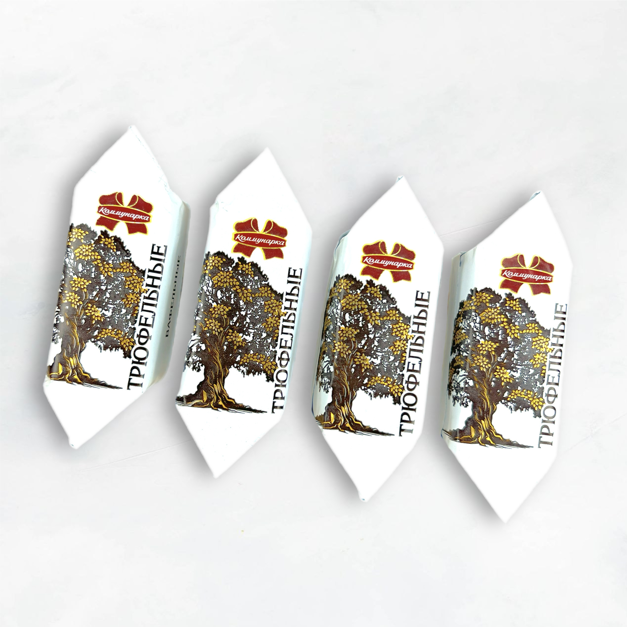 шоколад молочный (сахар, масло какао, сливки сухие, какао тертое, сыворотка молочная сухая, эмульгаторы, ароматизатор натуральный "Ванилин"), сахар, жир кондитерский (рафинированные дезодорированные растительные масла в натуральном и модифицированном виде, антиокислители, сыворотка молочная сухая, вафельный лист (мука пшеничная, крахмал кукурузный, масло подсолнечное рафинированное дезодорированное, эмульгатор, соль повареная пищевая йодированная, разрыхлитель, регулятор кислотности), какао-порошок, молоко сухое обезжиренное, эмульгатор, спирт этиловый ректификованный не ниже высшей очистки, ароматизаторы ("Ванилин", "Трюфель"), соль поваренная пищевая йодированная.
