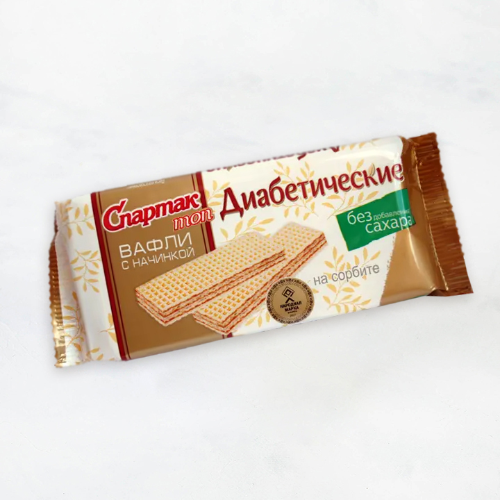 мука пшеничная, жир кондитерский (масло растительное - пальмовое, эмульгатор (лецитин соевый, антиокислитель -токоферолы, концентрат смеси)), подсластитель (сорбит), мука соевая, вафельный лист (мука пшеничная, масло подсолнечное,эмульгатор - лецитин соевый), арахис жареный тертый, какао-порошок, сливки сухие, масло подсолнечное, эмульгатор (лецитин соевый), разрыхлитель (сода пищевая), соль йодированная (содержит антислеживающий агент), ароматизатор "Ванилин". Может содержать следы орехов, яичных продуктов, сульфитов.