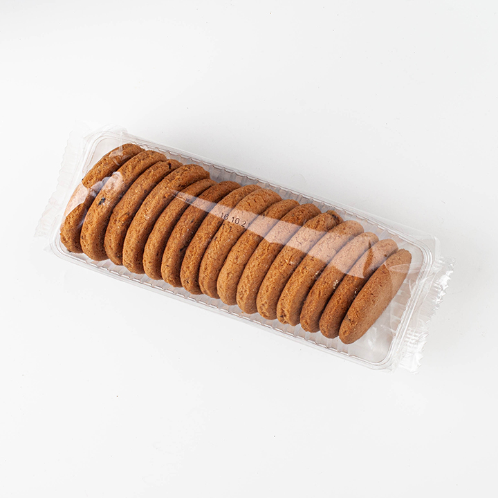 мука пшеничная, сахарная пудра, мука овсяная, маргарин (масла растительные (рапсовое, пальмовое), вода, соль йодированная (соль, йодат калия, агент антислеживающий), эмульгаторы, консервант, краситель (бета-каротин), регулятор кислотности (лимонная кислота), масло сливочное, изюм (виноград сушеный без косточек, содержит консервант), разрыхлитель, ароматизатор "Ванилин".