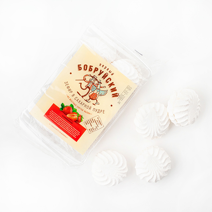 сахар, пюре яблочное, патока, белок яичный, припас клубничный (сахар, клубника, регулятор кислотности лимонная кислота), агент желирующий пектин, регуляторы кислотности: цитрат натрия 3-замещенный, лимонная кислота; ферментный препарат микробного происхождения инвертаза, ароматизатор «Клубника». Может содержать глютен из муки пшеничной.
