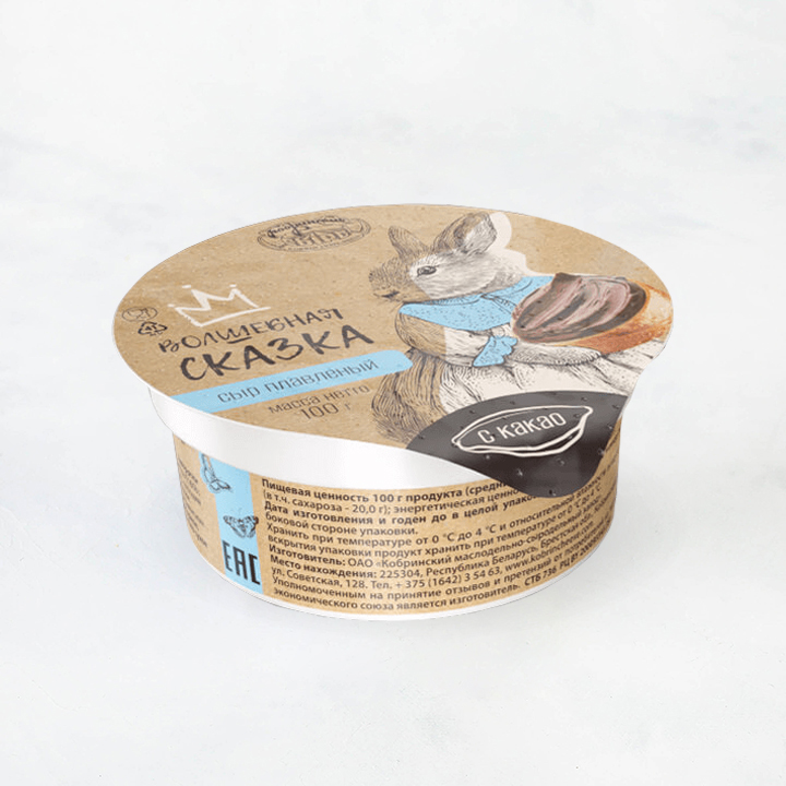сыр (молоко, консервант нитрат натрия, закваска, молокосвертывающий ферментный препарат животного происхождения), вода, сахар, масло сливочное, молоко сухое обезжиренное, какао- порошок, эмульгирующая соль триполифосфат натрия, консервант сорбат калия, ароматизатор ванилин.