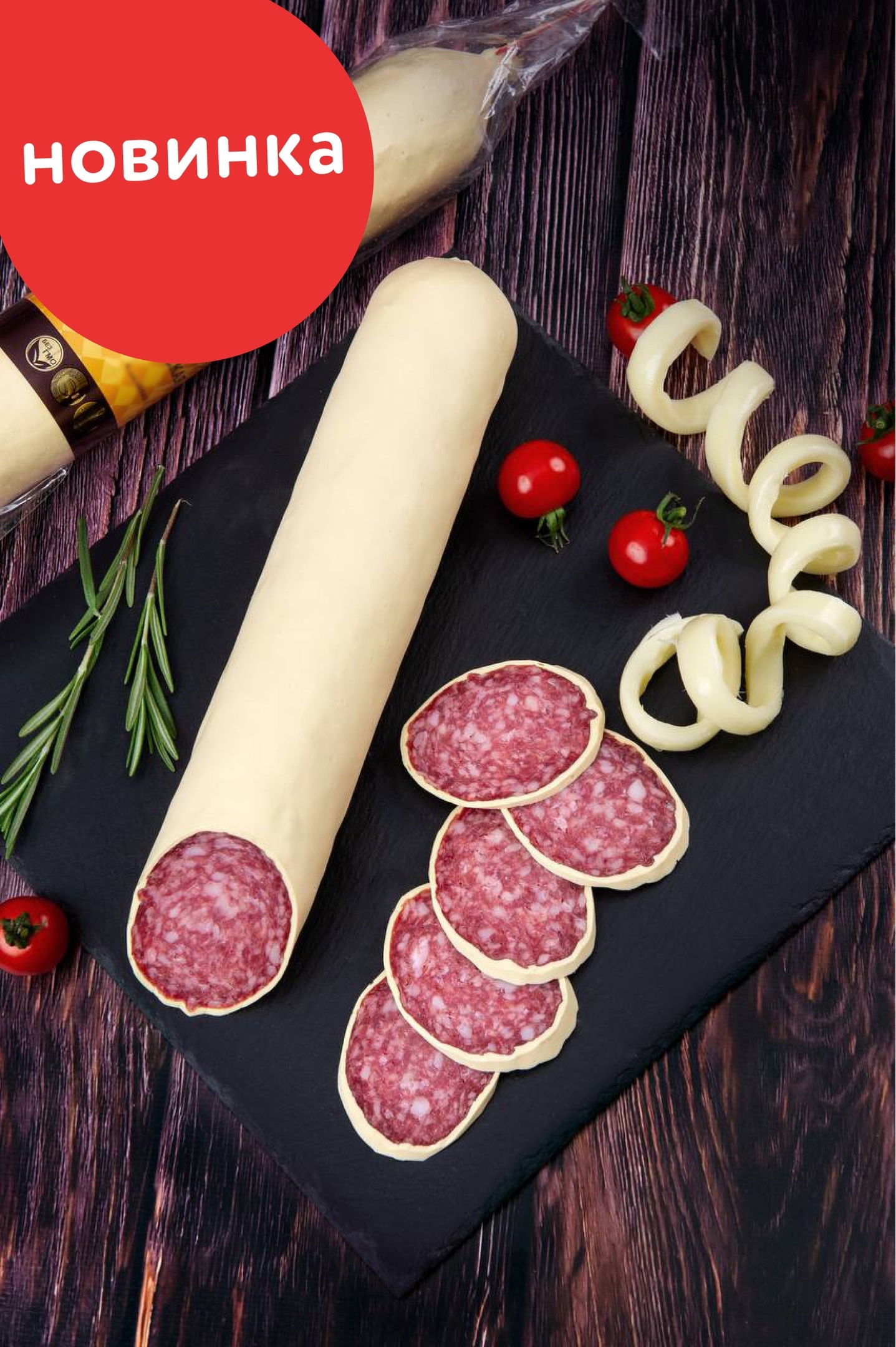 Сырокопченая колбаса «Кредем в сыре» - это великолепное сочетание интенсивного мясного вкуса с нежными нотками сыра.